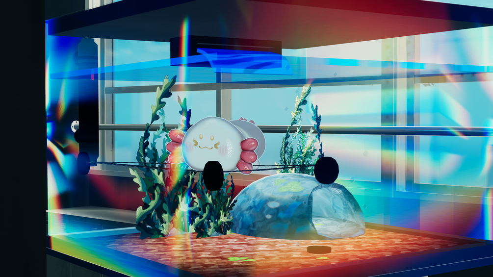 🥟 A chubby axolotyl who loves to sit in his hammock, eat, and curl up in his rock! 🥟