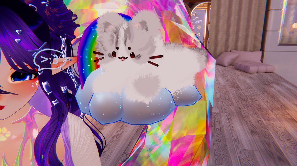 [RETIRED- NOW FREE ON PAYHIP] ‧₊˚ ☁️⋅♡𓂃 ࣪ ִֶָ☾. Cloud Kitty Follower ☾.𓂃 ࣪♡‧☁️‧₊˚ Cat Vrchat Follower asset